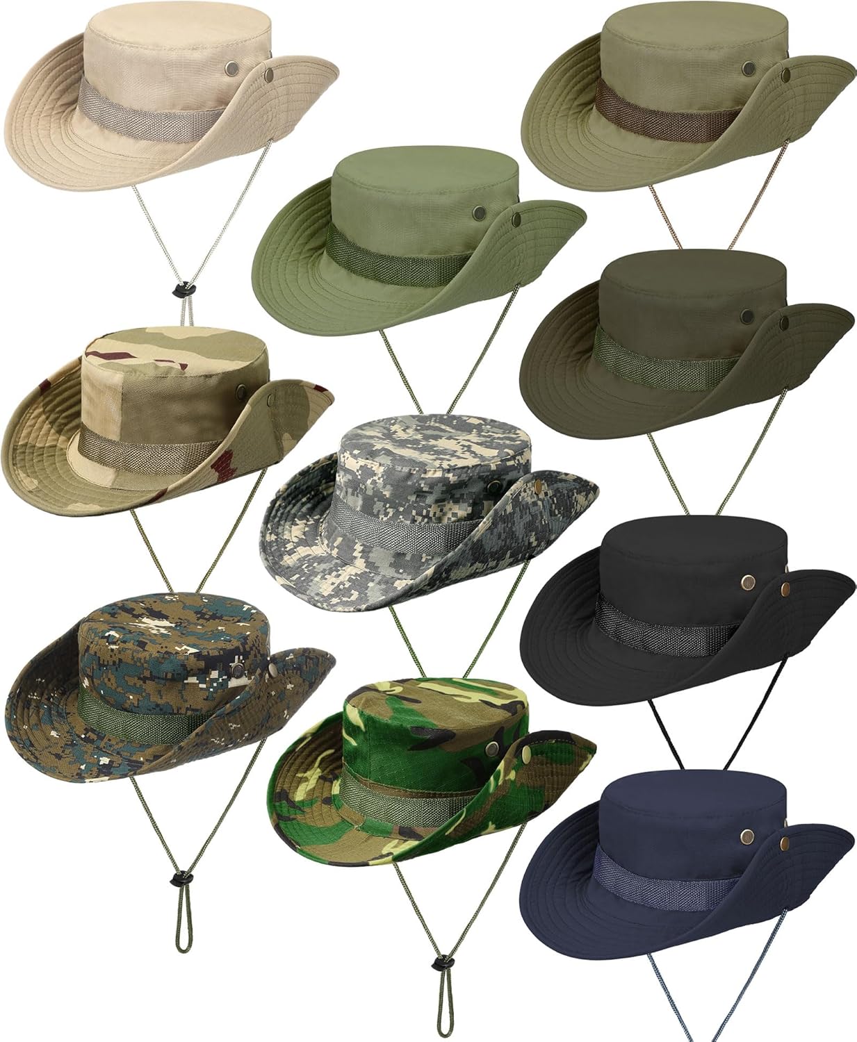 Features: Our zookeeper hat has khaki color, you can choose one to send your father, mother, brothers, sisters, wife, husbands, colleagues, neighbors, and other sports partners, to promote your relations. The fishing hunting bucket hat is easy to go well with your clothing, such as jackets, dresses, coats, shirts, vests and so on, to show elegant and handsome while still stay cool and comfortable. Specifications: Main material: bionic fabric Color: as picture shown Size: about 22-24 inches of head circumference Package includes: 10 x Wide brim boonie hats Notes: Manual measurement, please allow slight errors on size. The color may exist a slight difference due to different screen displays.