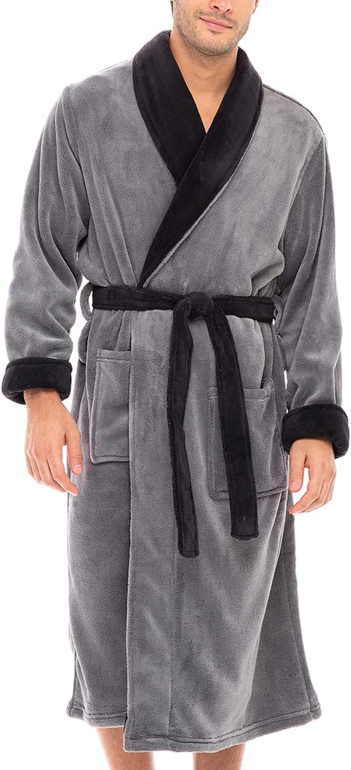 | Model Name | Men's Plush Fleece Robe With Pockets, Cozy Warm Bathrobe Black With Burgundy XL |