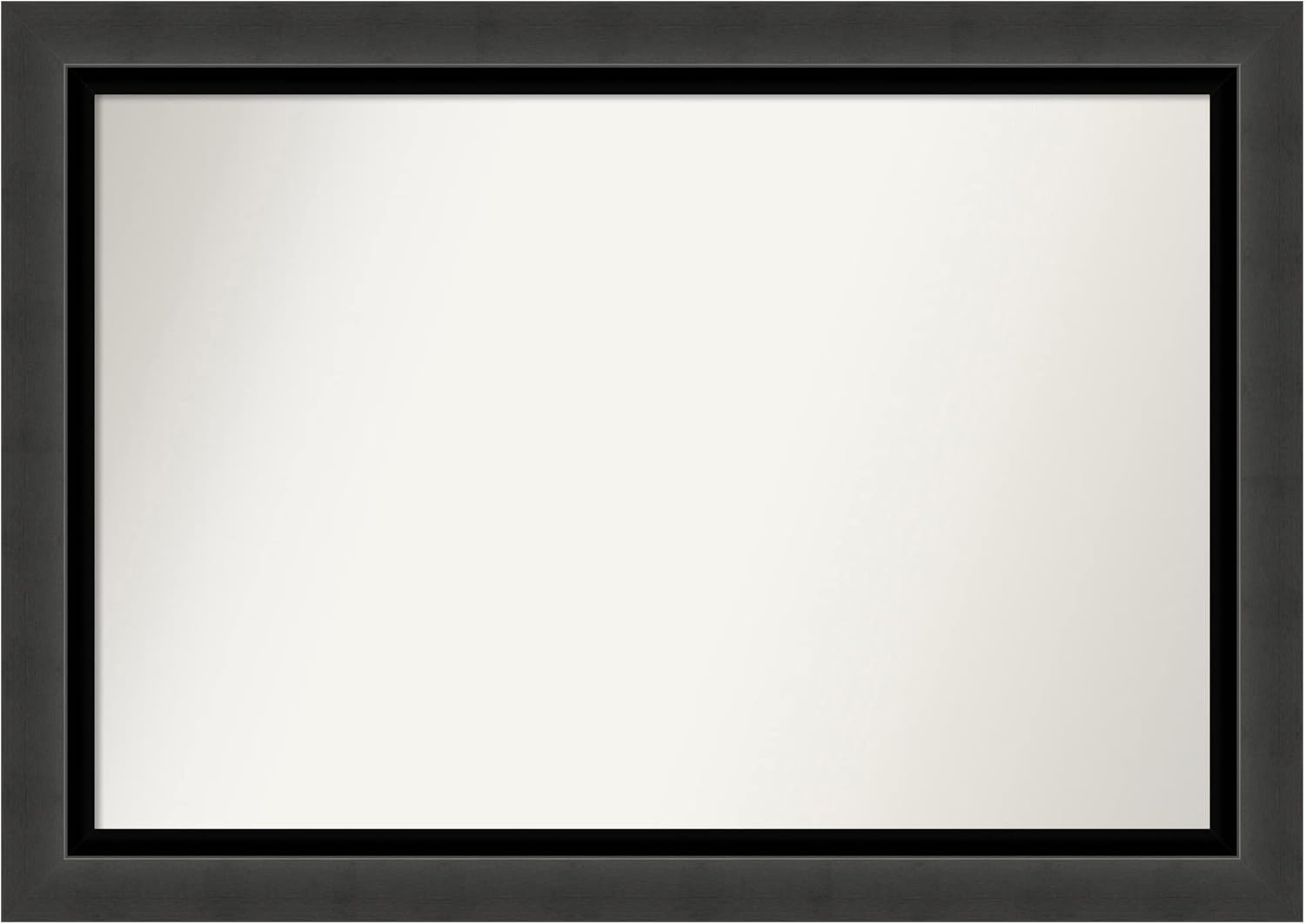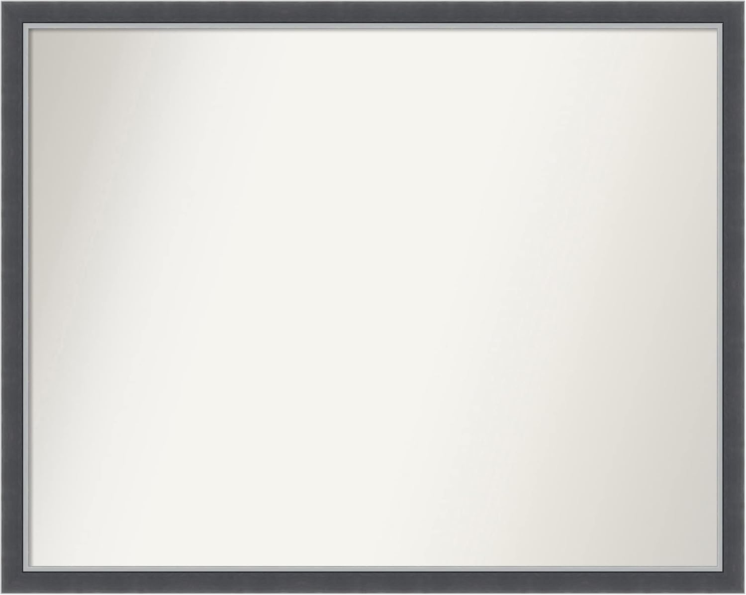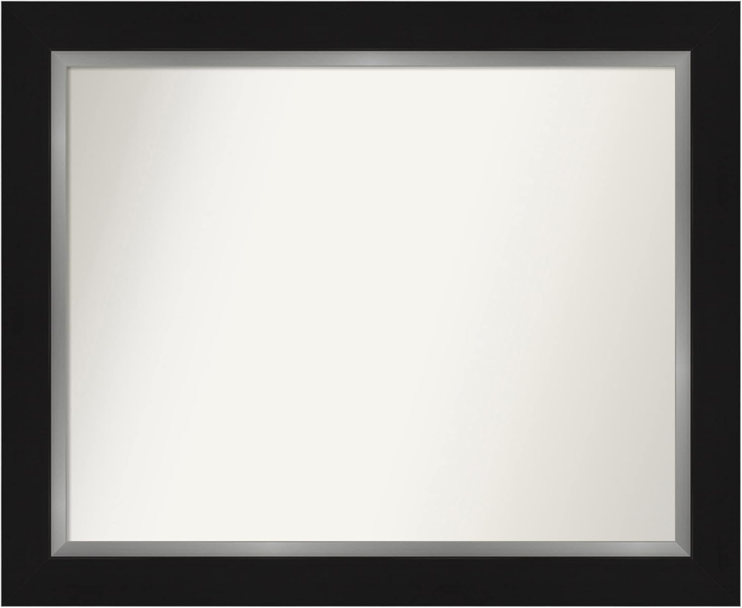 PRODUCT: Amanti Art Non-Beveled Bathroom Wall Mirror; OUTER SIZE: 24 x 30 inches; FRAME: Colonial Black 3"; FRAME FINISH: Satin; FRAME COLOR: Black. The Colonial Black frame features a classic black frame with satin finish and a deep scooped profile with a slight step. The outside edge features a scalloped profile. Give your bathroom the finishing touch with this framed wall mirror. Individually made using traditional custom framing techniques, it has the quality you would expect from your local frame shop. It holds its value with premium finishing that can be appreciated up close. Because of our attention to detail and focus on artistry, architects, interior designers, and homeowners alike choose this mirror to create beautiful living spaces.