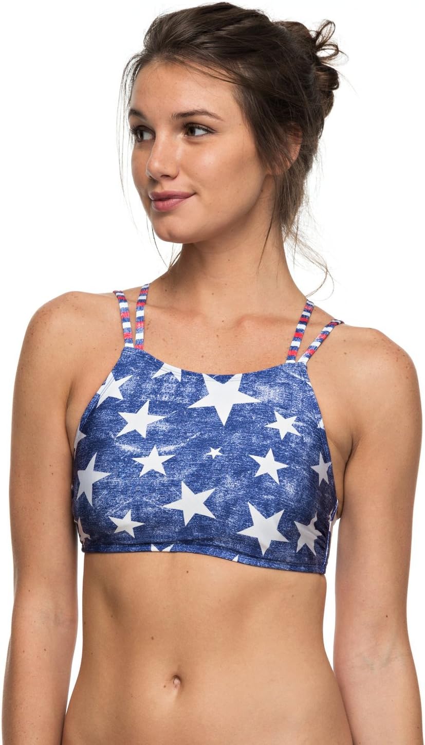Bikini top for women from Roxy. Features include: strappy love style, crop fit, large coverage top, adjustable straps, removable padding and nylon stretch fabric.